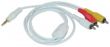 - 3.5mm Male / 3 RCA, iPod / MP3 Audio/Video Cable, White, 3 ft